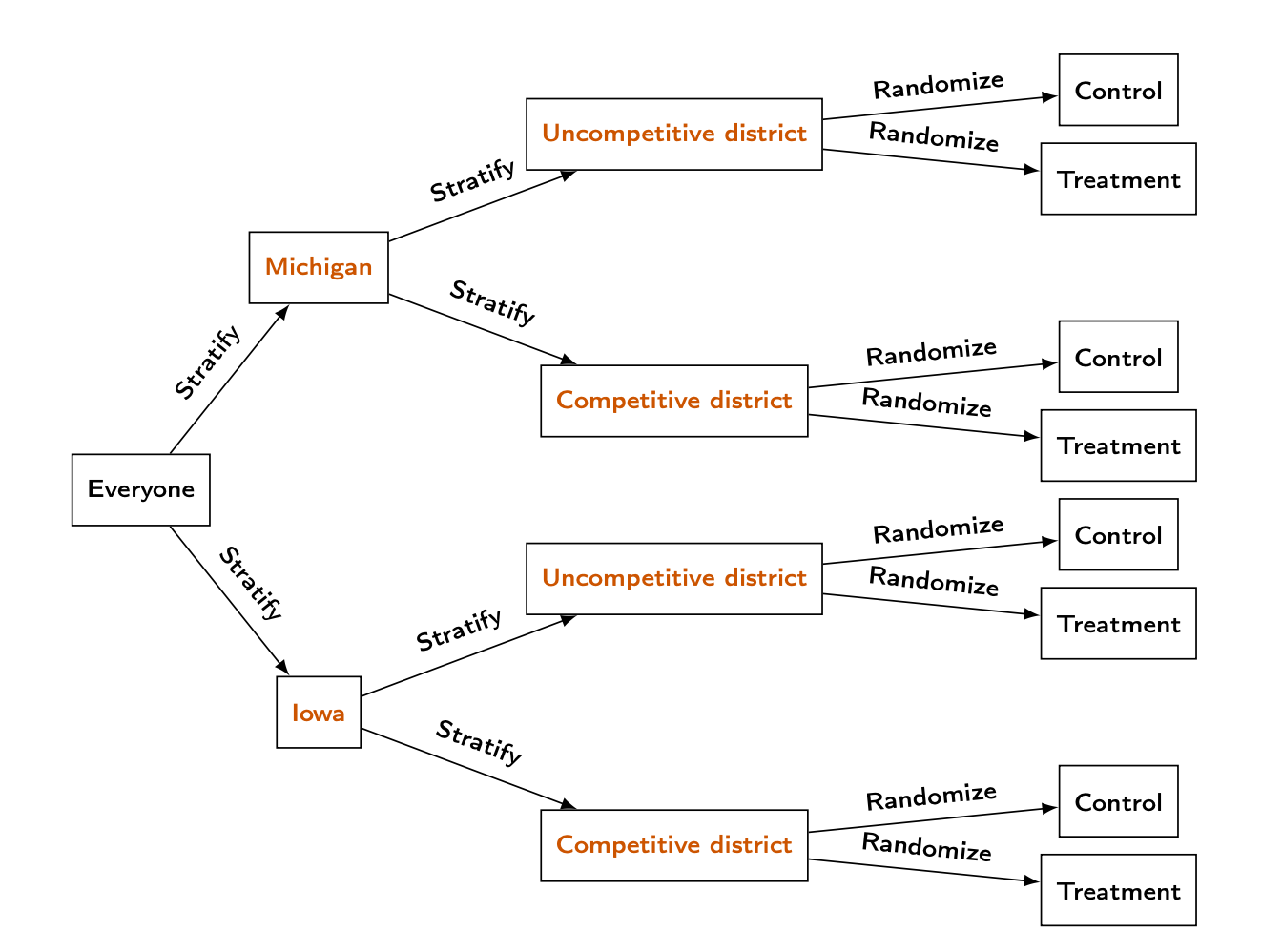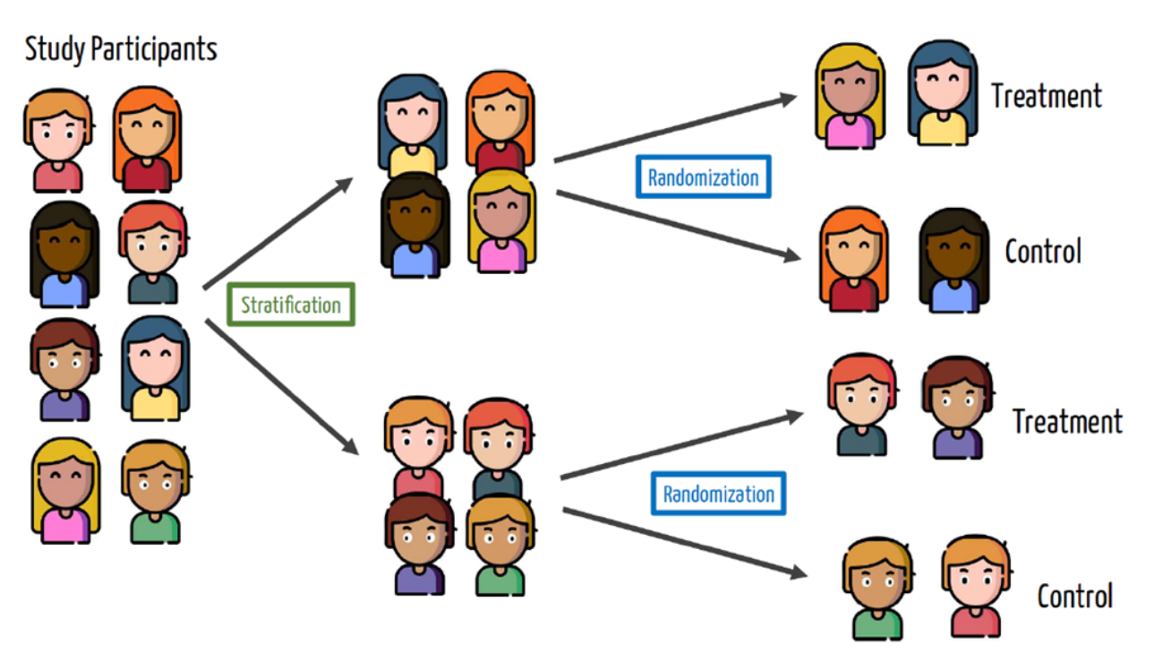We can solve this by blocking or stratifying: randomly assigning to treatment/control within groups.