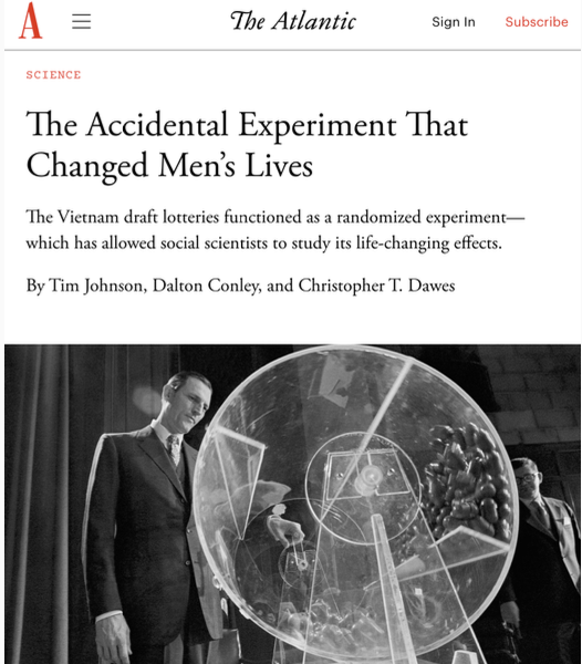 Lotteries (e.g., Vietnam draft lottery example)