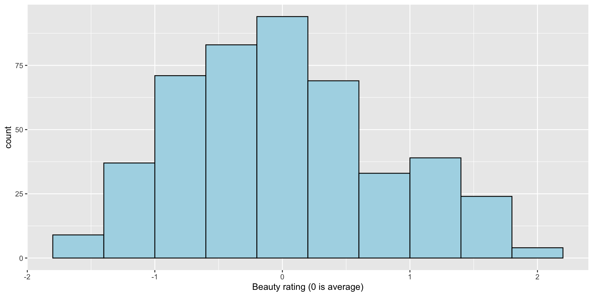 beauty 0.134063 0.033744 3.97 0.000082 ***
