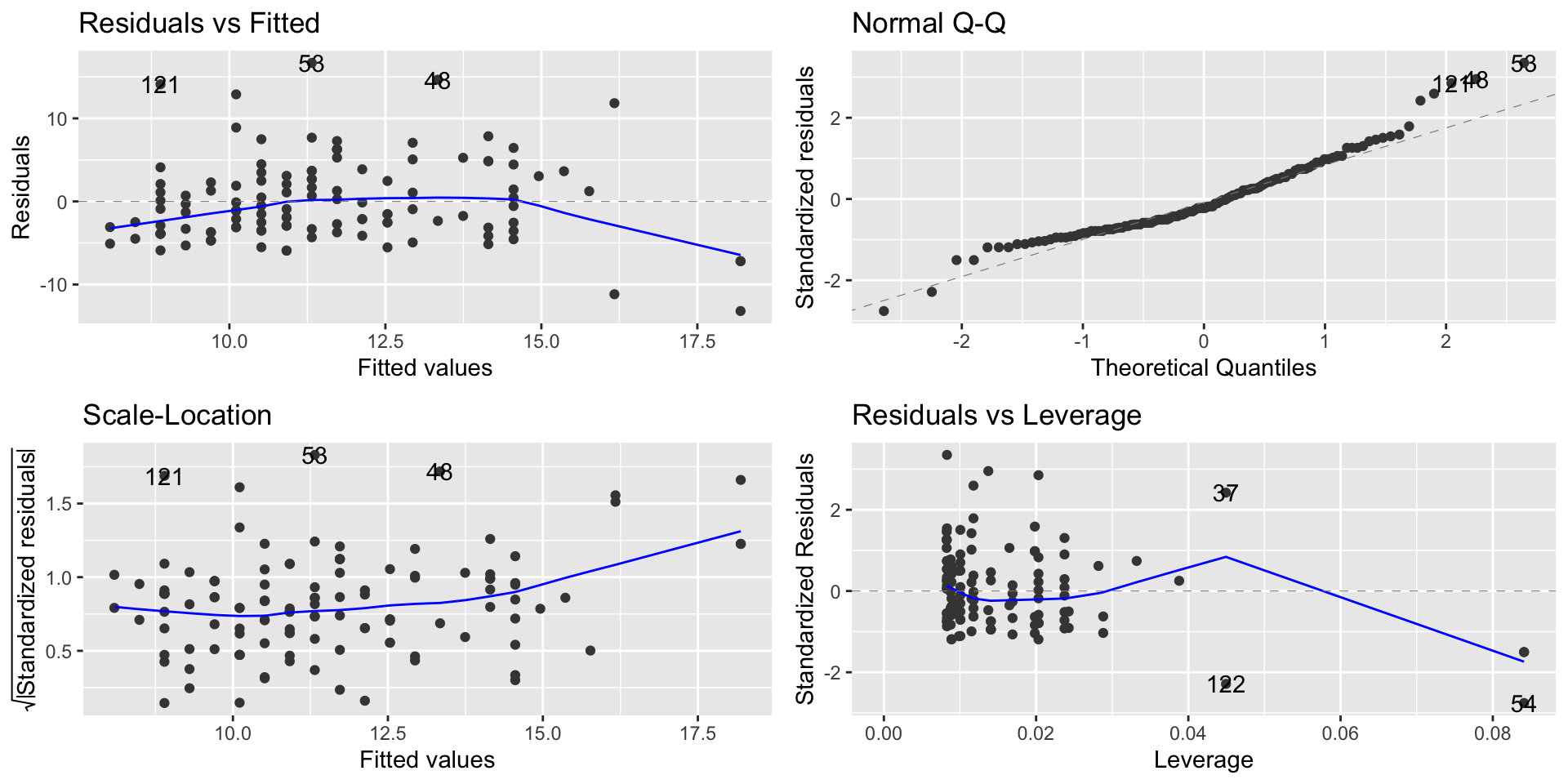 F-statistic: 228.7 on 4 and 61 DF, p-value: < 0.00000000000000022